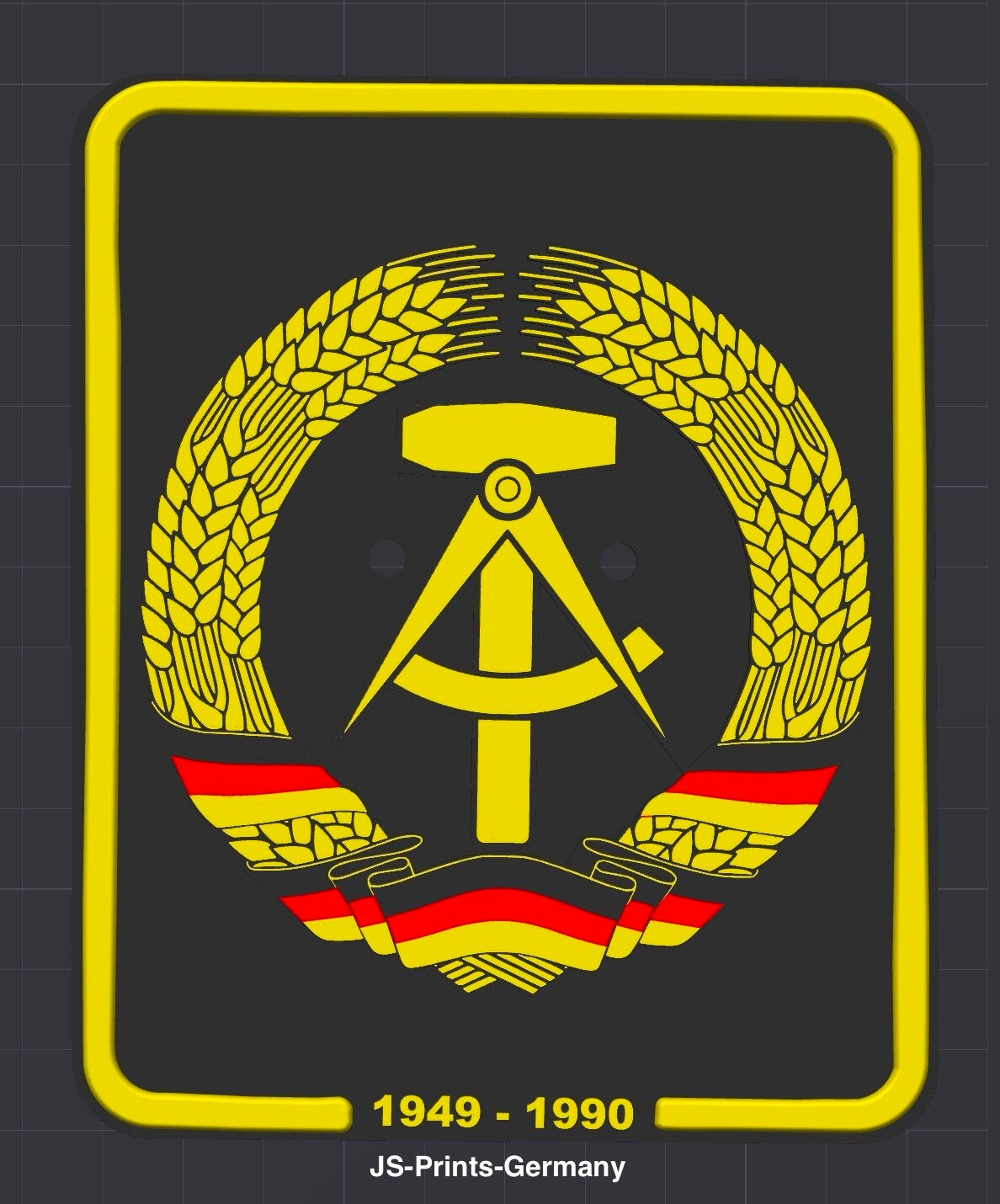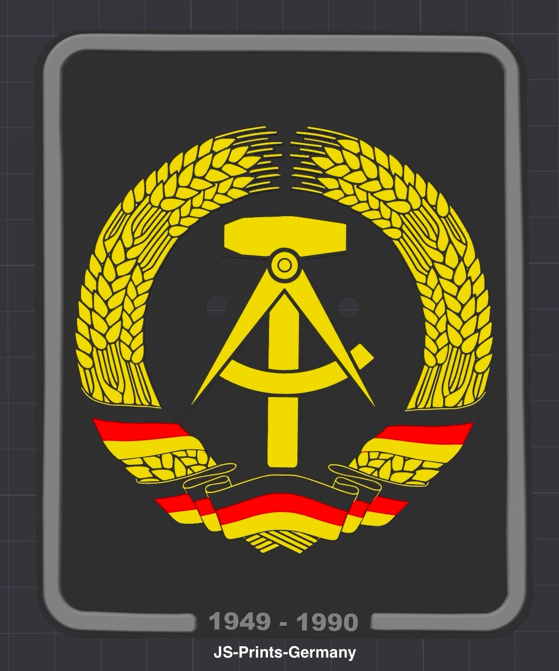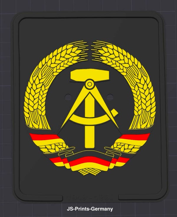 Holen Sie sich jetzt das 3D-gedruckte "DDR Wappen" Showkennzeichen und feiern Sie die Geschichte auf stilvolle Weise! Ideal für alle, die eine Leidenschaft für die DDR-Kultur und Automobilgeschichte haben.